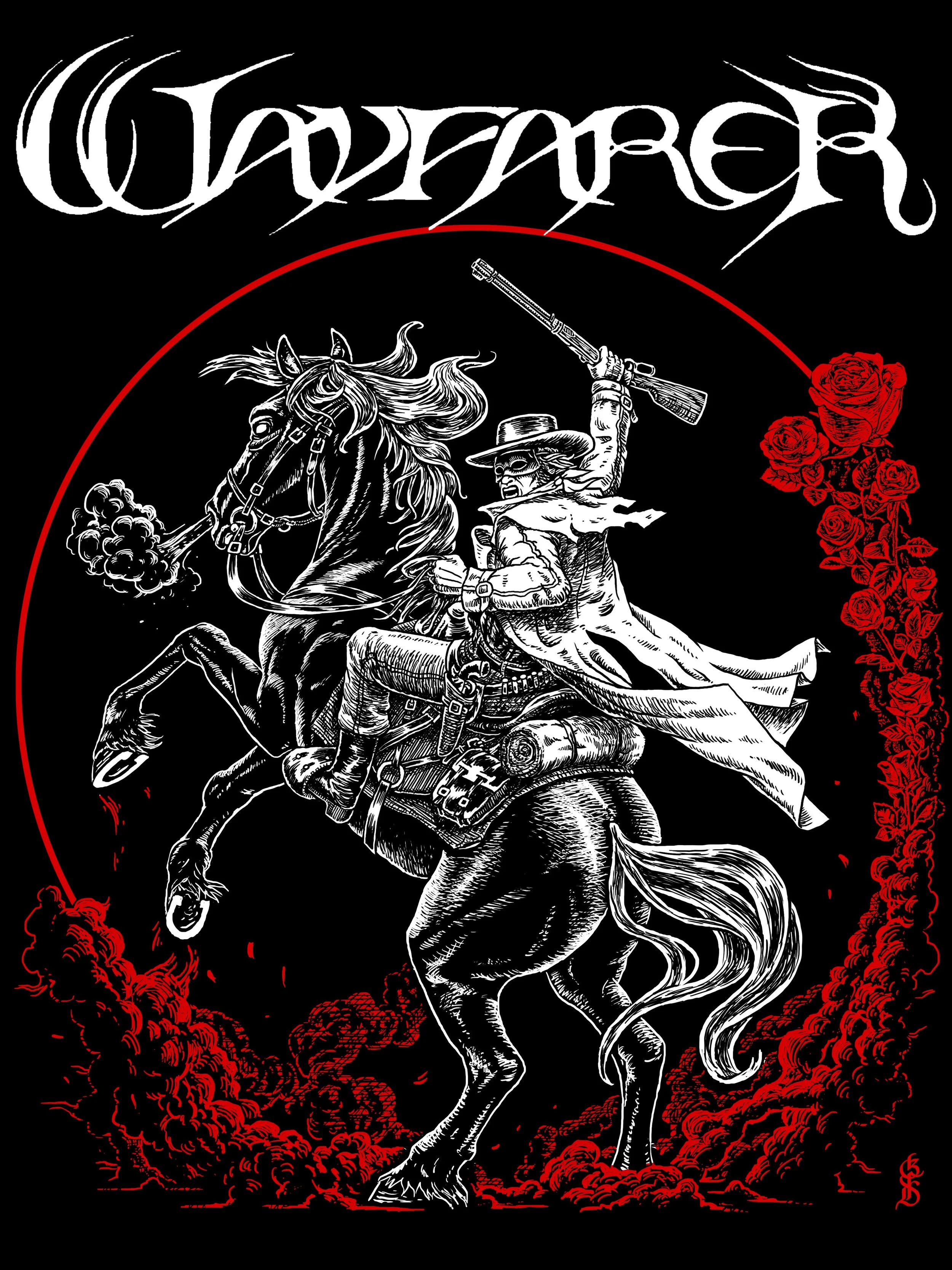 T-shirt design for Denver’s mountain-western black metal band Wayfarer, for the song “The Crimson Rider” from their 2020 album release A Romance With Violence.