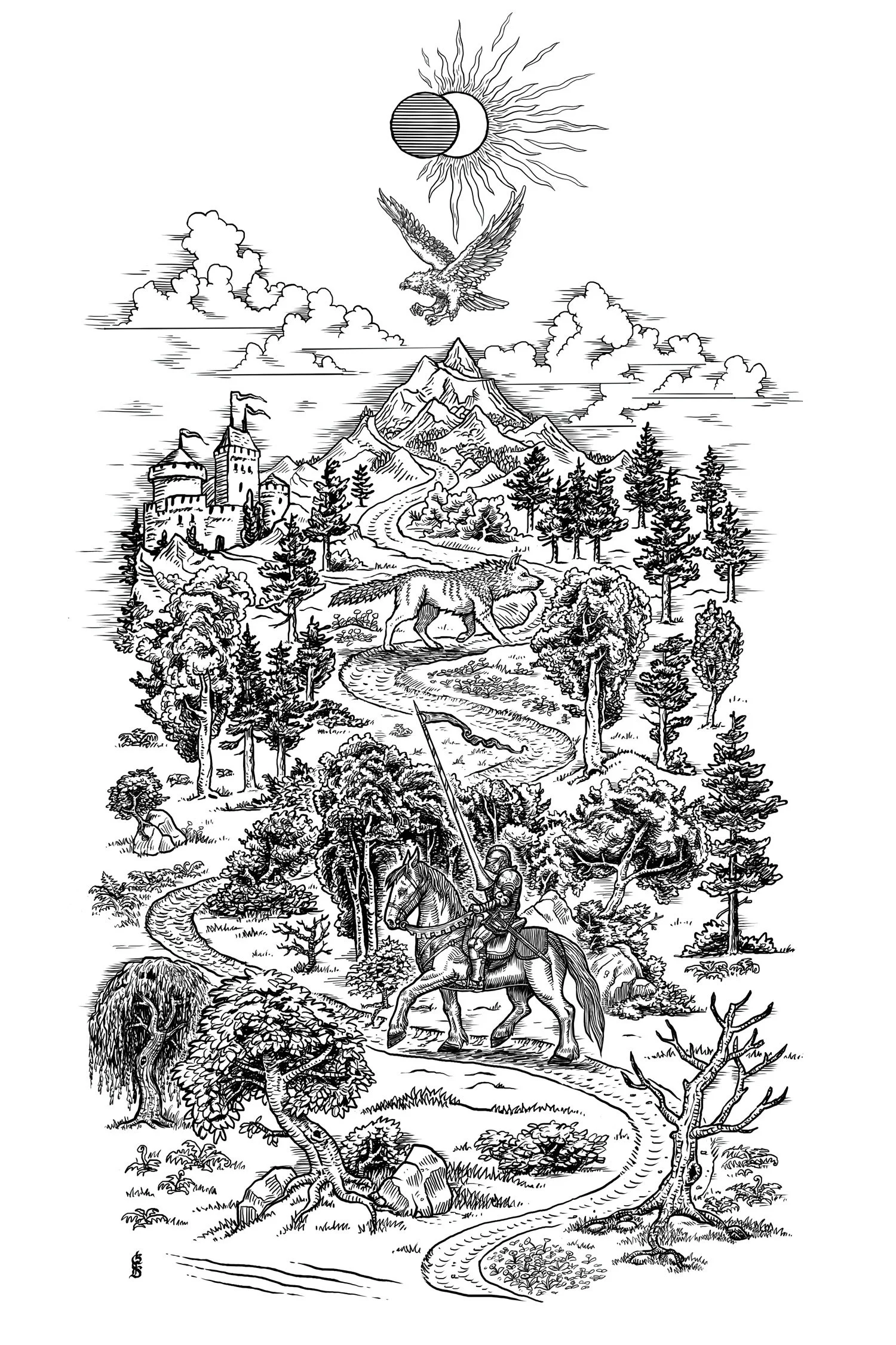 Commissioned illustration in a Dürer-esque woodcut style.